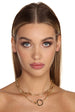 Get an effortlessly layered look with this gold clasp chain necklace! It features a double row of gold chain links. and an O ring detail with a large lobster clasp closure.Â
