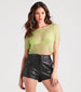 Pop the bubbly and pour it up! This see-through glitz top gives us champagne dreams! Featuring a round neckline and short sleeves. and is covered from top to bottom with pearl embellishments and a diamond-pattern glitter. Complete the poppin' look in high-rise jeans for a night out!
