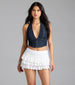 Elevate every moment in this stylish statement mini skirt designed with flirty ruffles and a flattering high-rise waist! Pair with a crop top and boots for a concert.