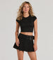 Your style is sure to get compliments in this mini skort! It features a flattering high-rise faux belted waist. a pleated silhouette. and a mini-length hem with shorts lining. Complete the look in a cute basic tee and sneakers for any casual plans!
