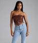 Stylish and edgy. this faux leather crop top will level up your look for festival season or a night out. Pair with high-rise jeans and ankle booties.